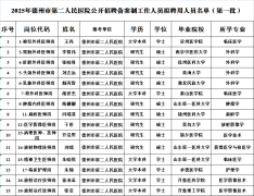 • 根据《2025年德州市第二人民医院公开招聘备案制工作人员简章》规定,按照岗位计划,经过网上报名、笔试、资格审查、面试、考察(递补)、体检等环节,现将拟聘用人员(第一批)予以公示。公示期为5个工作日,自2025年9月24日至2025年9月29日。公示期间,如对...