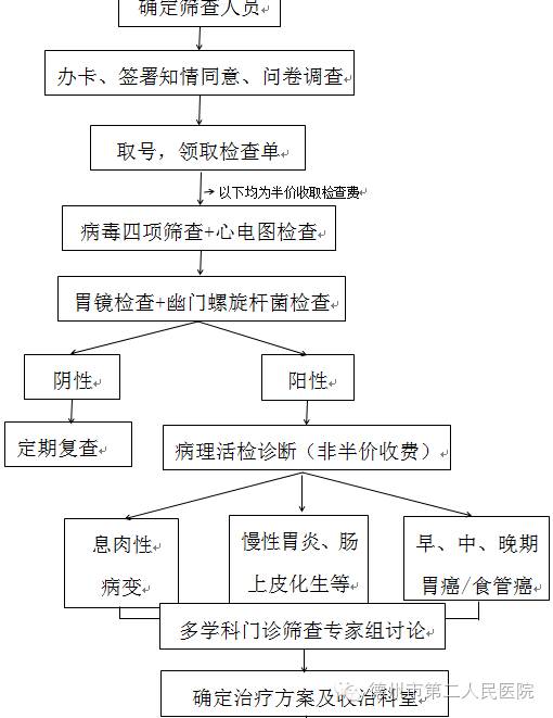 所有来院进行惠民筛查患者均出具纸质报告,对疑似癌前病变患者,由筛查科室于周一汇总筛查报告、门诊病历及问卷评估等资料(必要时患者到场)后报多学科综合门诊,由多学科综合门诊组织相关科室会诊并给予初步诊疗意见。根据患者实际情况将实行对口收治,并由收治科室医师办理住院手续,完善后续住院事项,做好疾病健康教育指导。